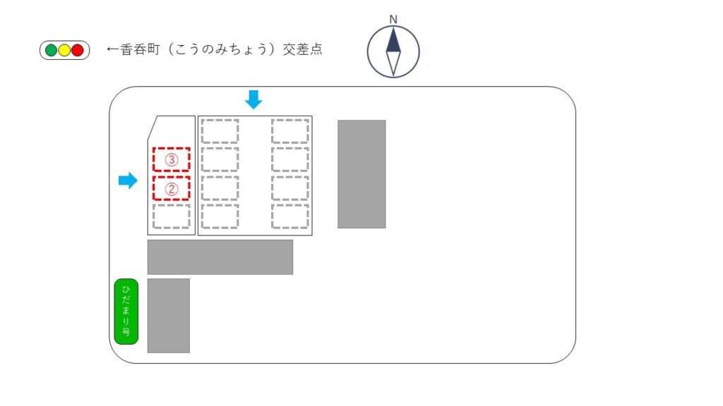 ひだまり号のすぐ北側交差点の角に、2台ではありますが、駐車場を確保いたしました。