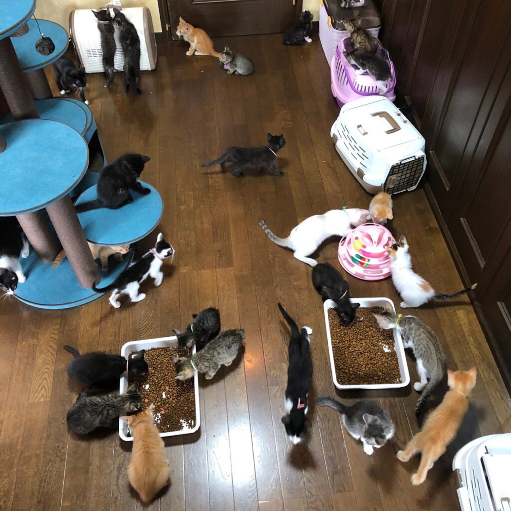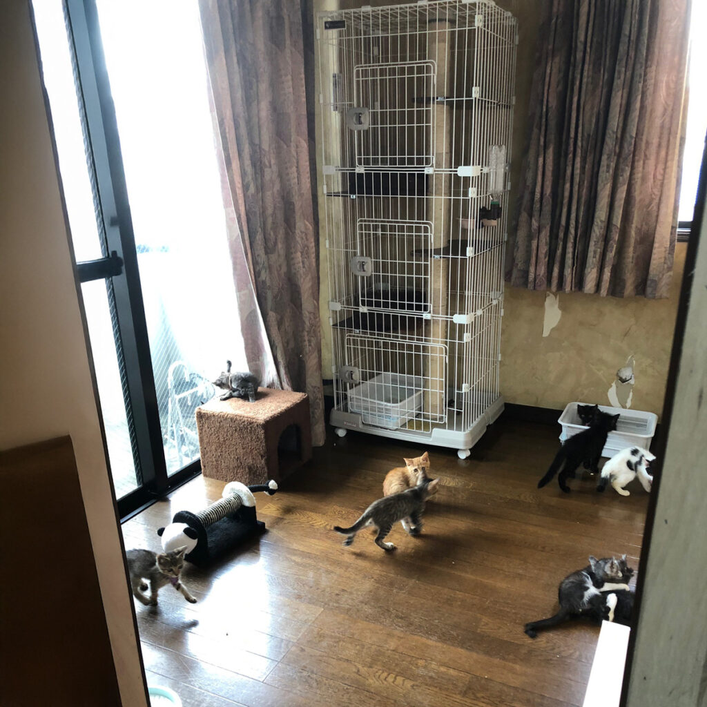 私たち夫婦の自宅3階が空いていたため、各部屋に簡易の壁を作ることで部屋数を増やし、病気の猫たちを飼育する為に必要なケージ、高圧酸素室の設備などを揃えました。