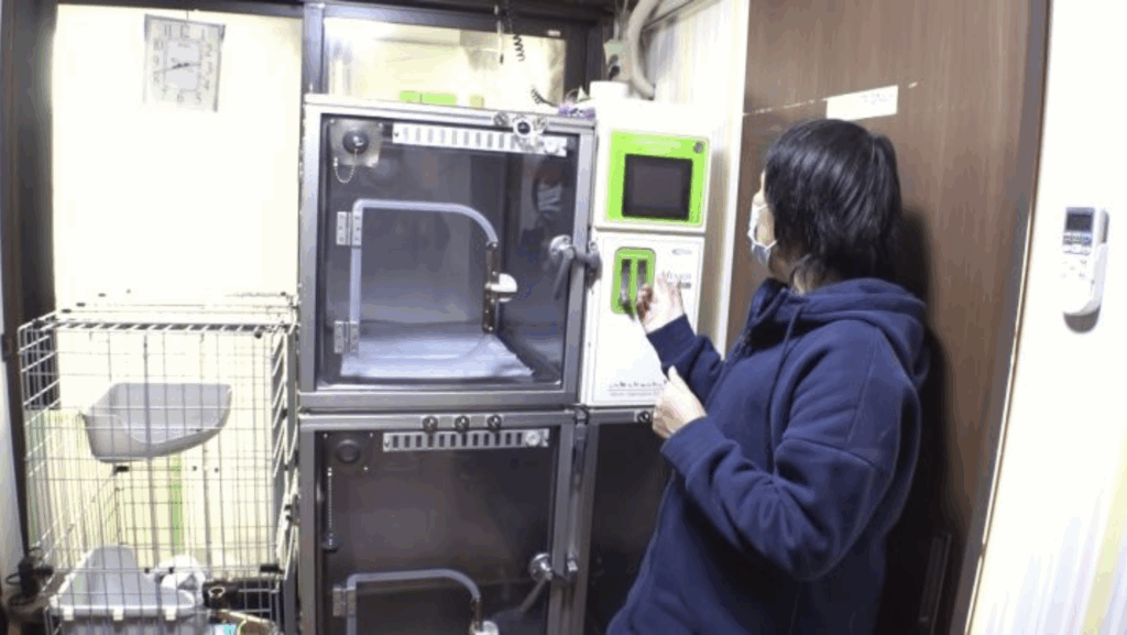 動物病院にあるものと同じ最新型の ICU をシェルターに完備。ひだまり号は ICU を完備した、他にはない、何よりも猫の事を考えた保護猫カフェに成長しました!